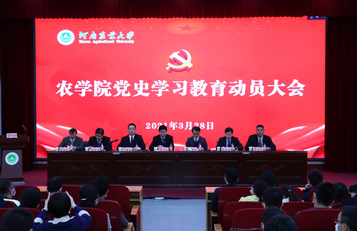 党史学习教育动员大会在龙子湖校区教学楼A座大教室一召开,深入学习习近平总书记重要讲话精神,落实中央、省委和学校党史学习教育动员大会部署和校党委魏蒙关书记讲话要求,对草榴