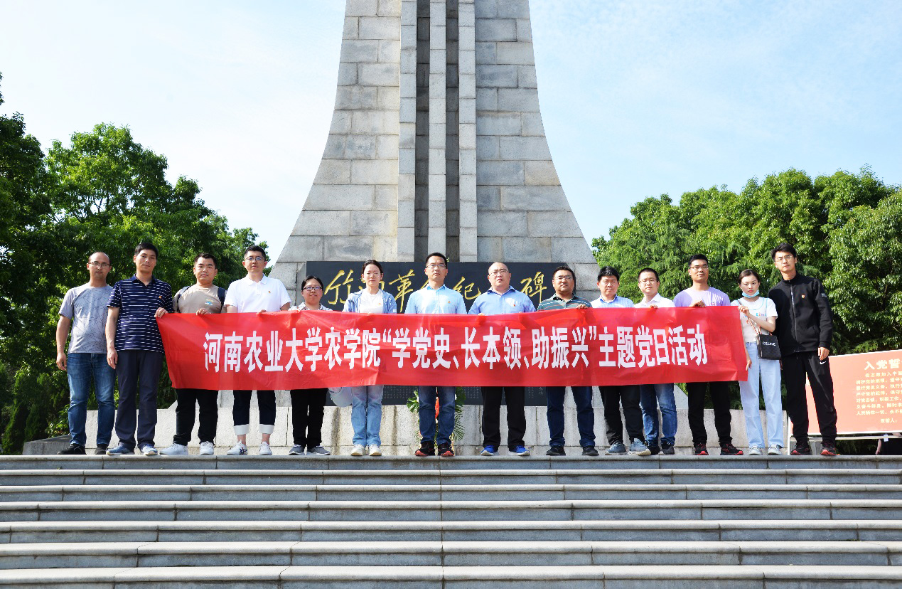 农学系教工党支部联合行干党支部党员赴确山竹沟革命纪念馆和竹沟革命烈士陵园开展主题党日活动,聆听历史回音,深切缅怀革命先辈的丰功伟绩,激发党员干部的爱党爱国热情。