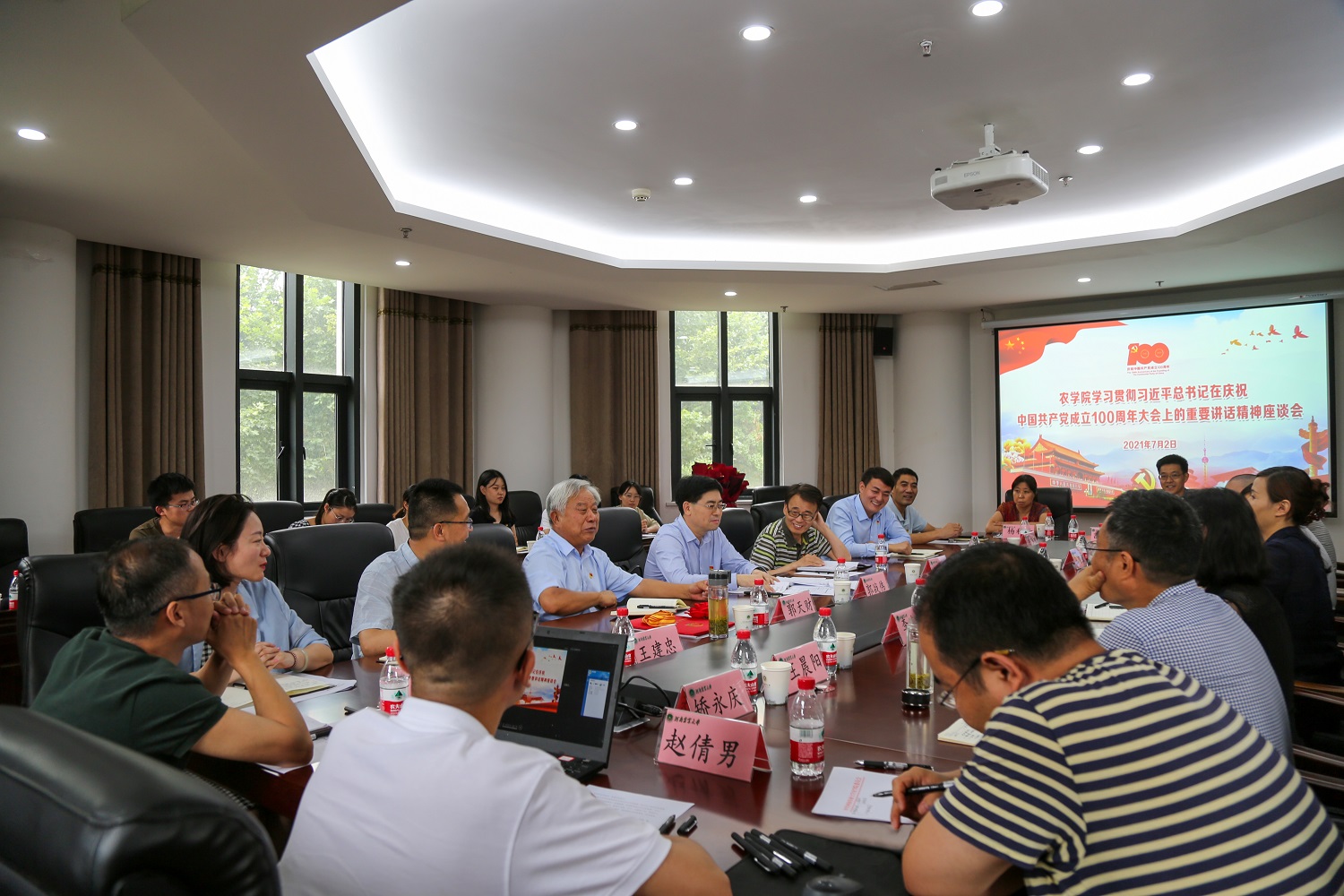 教工党员代表王道文、吴刘记、王志强、李娟、王晨阳,学生党员代表赵倩男,无党派人士代表殷冬梅、李连珍,九三学社社员董永彬分别进行了交流发言,纷纷表示要认真学习贯彻习近平总书记在庆祝中国共产党成立100周年大会上的重要讲话精神,以郭天财、赵春阳等先进党员典型为榜样,不忘初心使命、坚定理想信念,不负时代、不负韶华,以强农兴农为己任,为推进乡村振兴作出积极贡献。