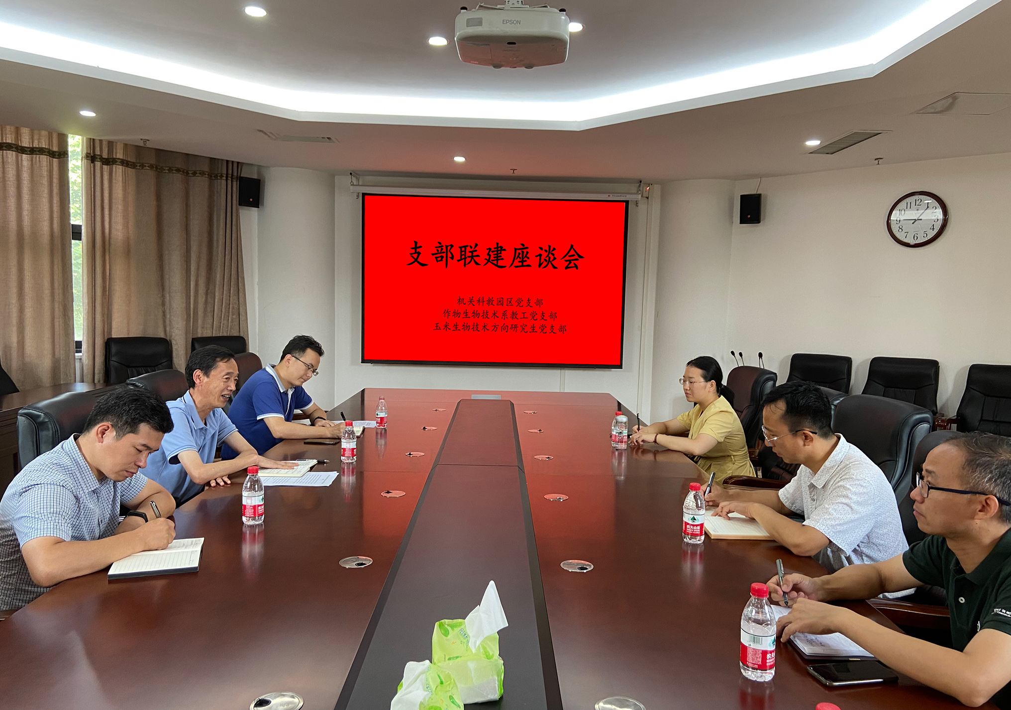 作物生物技术系教工党支部、玉米生物技术研究生党支部与科教园区管理办公室党支部在第一实验楼召开支部联建座谈会。科教园区管理办公室党支部书记吴永林、草榴