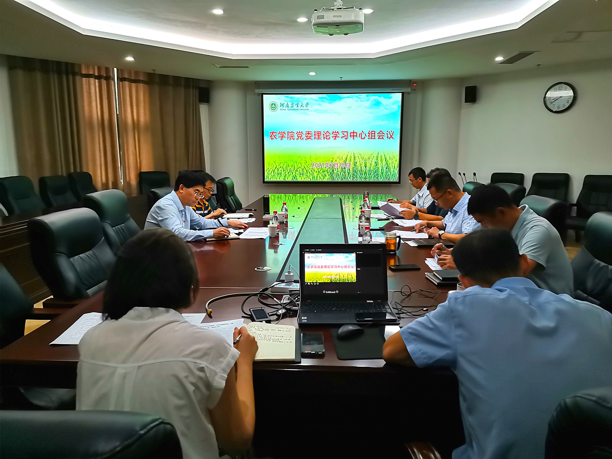 本网讯(通讯员/刘银银 图片/赵倩男)7月19日上午,院党委理论学习中心组在龙子湖校区第一实验楼南201会议室举行集体学习。院领导和院党委委员参加会议。学习由校党委委员、院党委书记郭战伟主持。