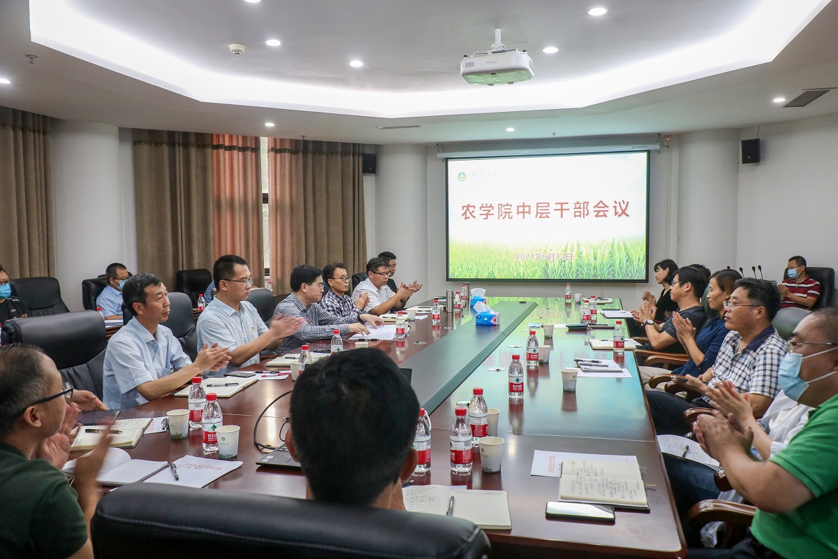 学术副校长、院长王道文总结安排工作,他从党的全面领导持续强化、党史学习教育稳步推进、暑期防汛抗疫扎实有效、学科与人才队伍建设持续加强、教育教学和人才培养质量持续提高、科技创新能力和水平持续提升、社会服务与合作交流持续深化等方面对2021年上半年工作进行了全面总结;从继续开展党史学习教育、不断加强基层党建工作、持续强化思政教育工作、加强学科建设和科学研究工作、积极做好本科教学审核评估工作和强化专业建设、加强研究生导师队伍建设和专业学位研究生教育、加强国内外合作交流、加大新品种和新技术示范推广力度、提升学院管理现代化水平等方面对新学期工作进行了安排部署。