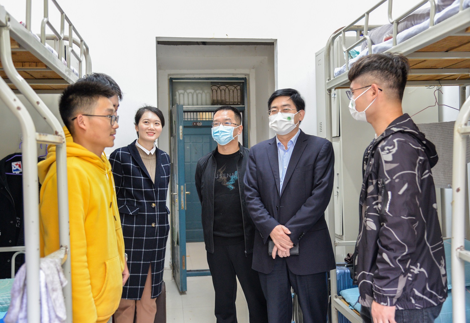 下午,学院领导走访新生宿舍,校党委委员、院党委书记郭战伟就校园体验、人际关系、未来规划等方面与新生进行了交流并提出四点期望。第一,尽快适应大学生活。要尽快从高中生活转变到大学生活,从家庭生活过渡到集体生活,调整自身生活状态和精神风貌;第二,注意保护自身安全。要保护个人人身安全、财务安全、信息安全及网络安全,提高防范意识;第三,多与父母沟通联系。及时告知父母自己的在校情况,避免父母不必要的担心和忧愁;第四,与同学友好相处。要相互包容、相互谅解,塑造一个团结向上的新集体。