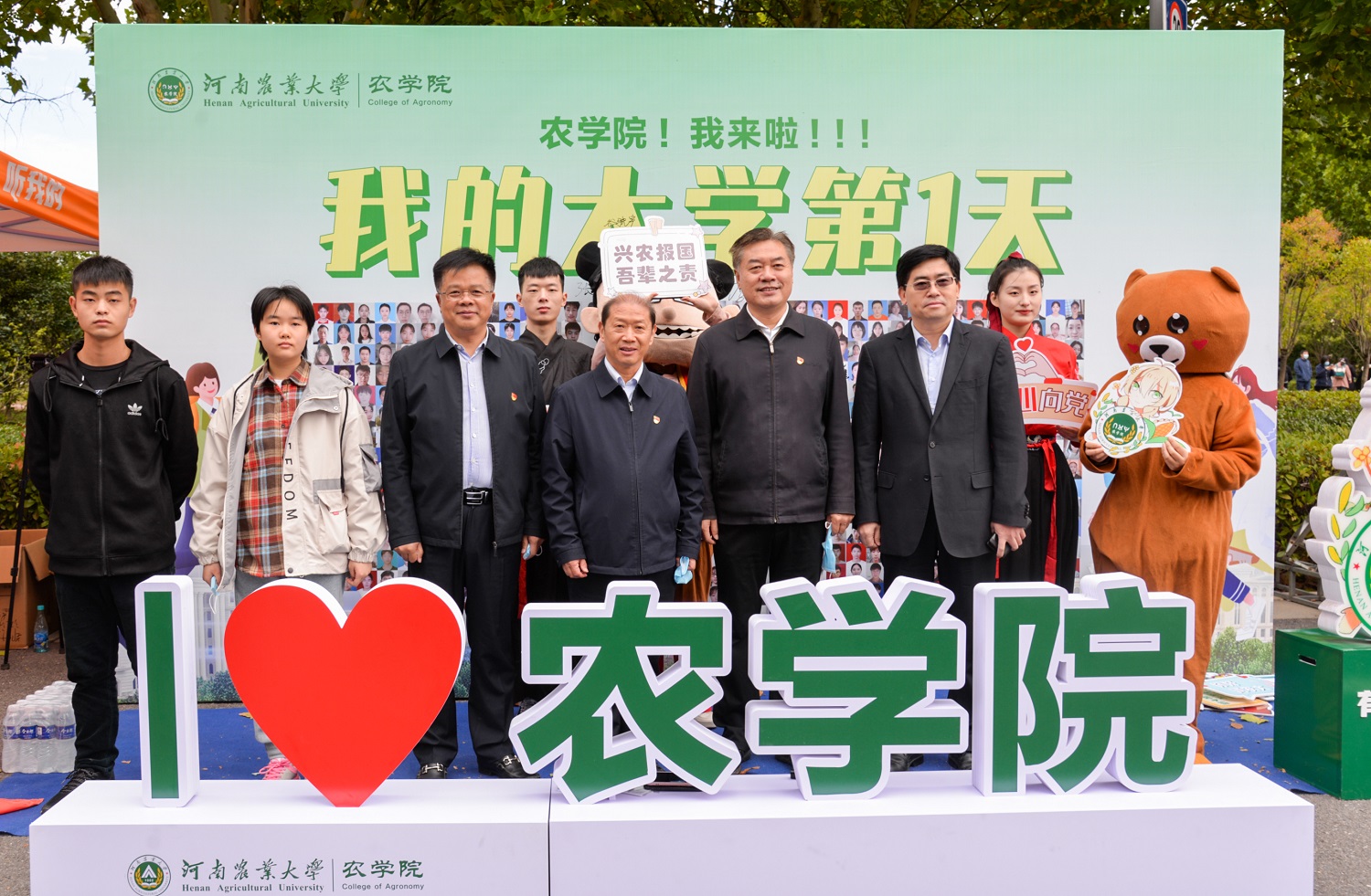 新生,并亲自为农学类21-3班的李奕颖颁发学院新生大礼包,关怀地询问她作为一个女生为什么要选农学,是否了解农学。李奕颖回道,“虽然我对农学了解不够深,但是因为我喜欢绿色,喜欢自然,愿意努力去学。”介晓磊提到,农学专业是学校非常厉害的专业,作物学是河南省唯一一个一级学科国家重点学科,河南省作为农业大省,农业有着至关重要的地位,希望她好好学习专业知识,弘扬三农精神。李奕颖表示会牢记校长的教诲,努力学习!随后介晓磊一行和李奕颖等新同学在学院签名墙前合影留念。