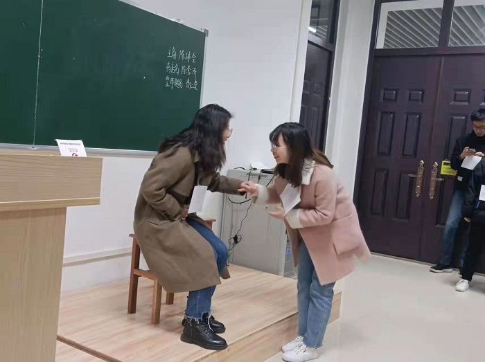 活动现场,同学们以小组为单位,依托白芷、天麻、三七、熟地、化橘红等中药材的鉴别知识为基础,结合不同主题背景依次上台演绎精彩故事。《白兔仙子和李秀才的奇遇》借助虚构的神话故事,介绍了中药白芷解表散寒、消肿排脓的功效;《合作促发展》的故事以百年老字号逐渐衰落而制药工厂层出不穷为背景,讲述二者的优劣与矛盾冲突,表达合作共赢的理念。《胡庆余堂之戒欺》通过讲述胡雪岩如期制作好药物,医治好因中举过于兴奋而癫狂的书生的故事,凸显了胡庆余堂的文化特色;在《“夺命”三七》的故事中,同学们化身古代郎中与知府大人演绎三七救人与误人的故事,点明了三七在种植与采收时的注意要点。场上表演的同学们全情投入,演绎各色剧本人物,现场气氛活跃,台下观众欢笑声不断。