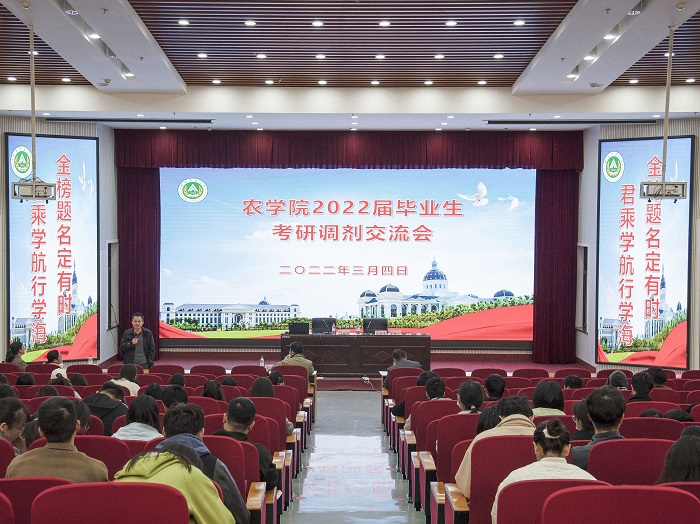 考研率。随后,王桂凤、任锐、徐丽萍、王丽芳分别就中国农业大学、南京农业大学、华中农业大学和西北农林科技大学往年的招生情况与政策进行介绍,并以自身考研经历告诫考研同学认清自身情况,及时关注高校调剂信息,把握好专业优势,认真规划未来发展。