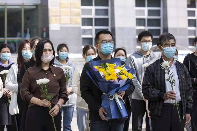 李浩川简要介绍了吴绍骙先生的基本情况和事迹。参加活动的师生依次向吴老铜像敬献鲜花、鞠躬、默哀,表达对吴老的深深思念与缅怀之情。