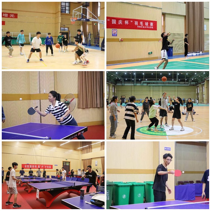 于龙子湖校区体育馆二楼举办首届“国庆杯”体育竞赛,竞赛分为篮球,羽毛球,乒乓球三个类别。