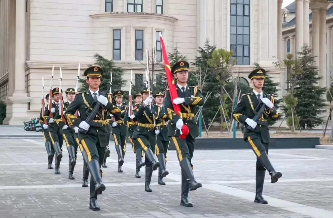 仪式开始,国旗护卫队迈着坚定有力的步伐,肩扛鲜红的国旗走向国旗台。在雄浑激荡的国歌声中,全体师生以饱满的精神状态庄严肃立,注视着五星红旗冉冉升起。