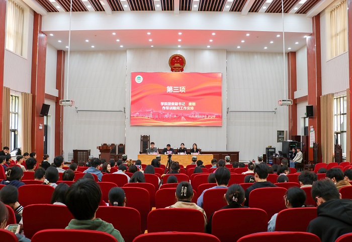 副院长李浩贤、院团委书记朱瑞萍、院团委副书记陈曦冉及院团委副书记唐朝出席本次大会,全体乘训教官、2021级全体本科生、助理班主任及助理教官参加了大会,2022级全体本科生通过线上直播形式观看。大会由朱瑞萍主持。