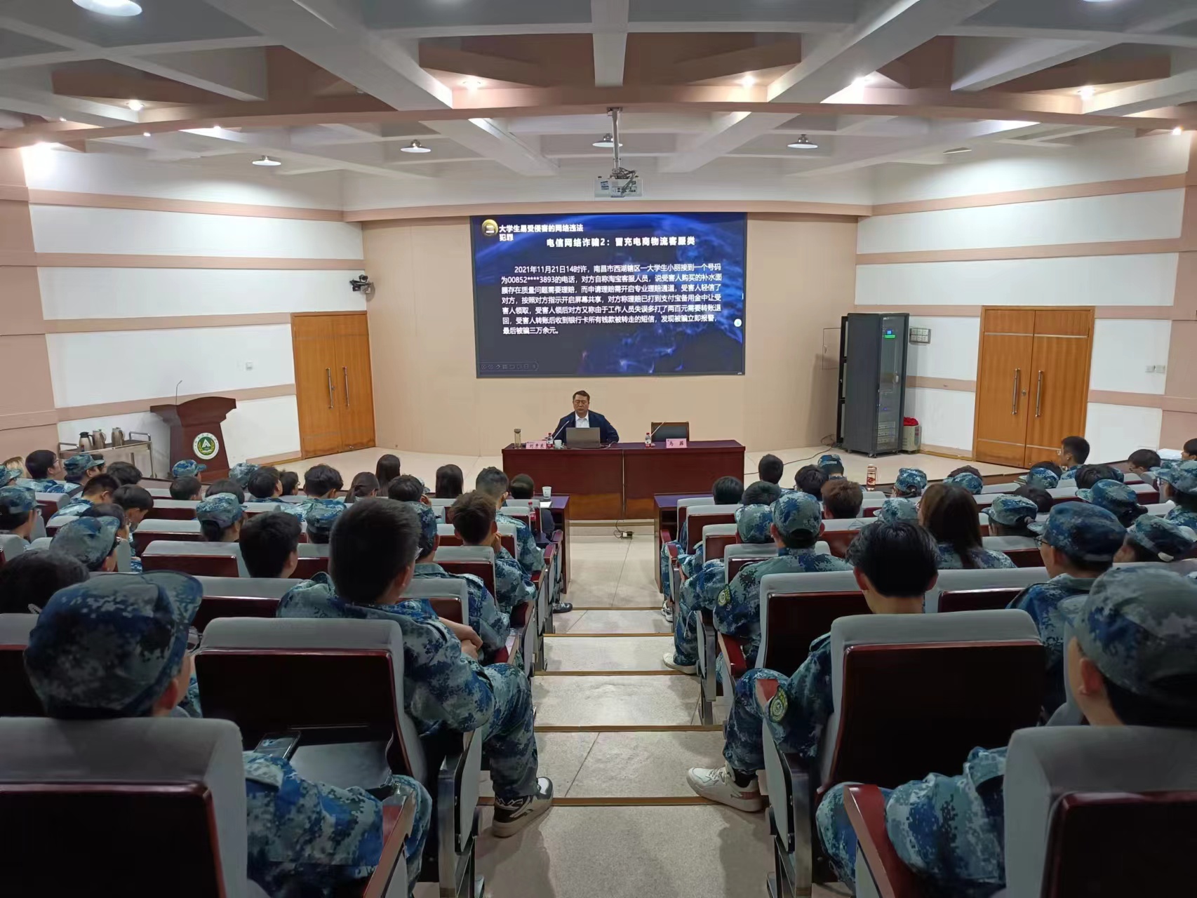 报告会上,刘彦东从网络违法犯罪形式概况、大学生易受侵害的网络违法犯罪、大学生易涉足的网络违法犯罪、维护网络安全与自身安全等四个方面详细解读了网络违法犯罪的现状及其具体表现形式,以“灵魂八问”提出了防范网络诈骗“六个一律,十个凡是,三不一多”的原则。随后马菲对活动进行总结,希望同学们能够加强法治观念和法治意识,提高防范和抵御安全风险能力。