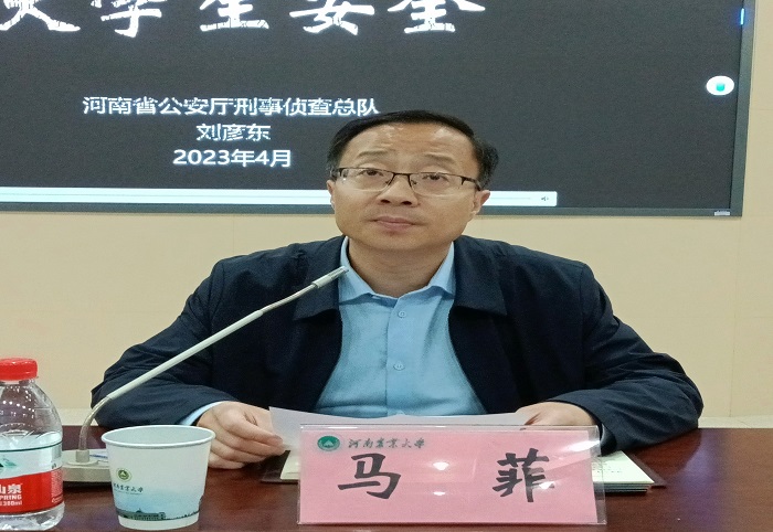 于文化路校区300人报告厅举行国家安全教育专题报告会,特邀河南省公安厅刑事侦查总队总队长、河南省打击治理电信网络诈骗犯罪联席会议办公室主任、武汉大学马克思主义学院思政专业法学博士刘彦东作题为《网络违法犯罪与大学生安全》的专题报告。院党委委员、副院长李浩贤,院团委书记朱瑞萍,院团委副书记陈曦冉,草榴