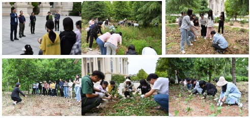 与外语学院组织2021级中药学一班、四班和英语一班的学生在龙子湖校区“知行本草园”联合开展耕读教育活动,草榴