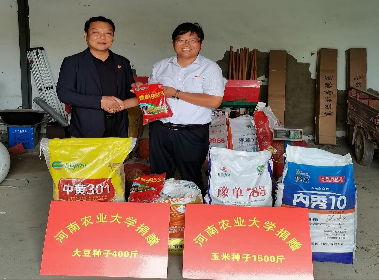 在国营民权农场举行赠送仪式,向农场赠送适合玉米大豆带状复合种植的高产多抗优质玉米和大豆新品种,为商丘市复合种植提供品种与科技支撑。随后,殷贵鸿一行到草榴
