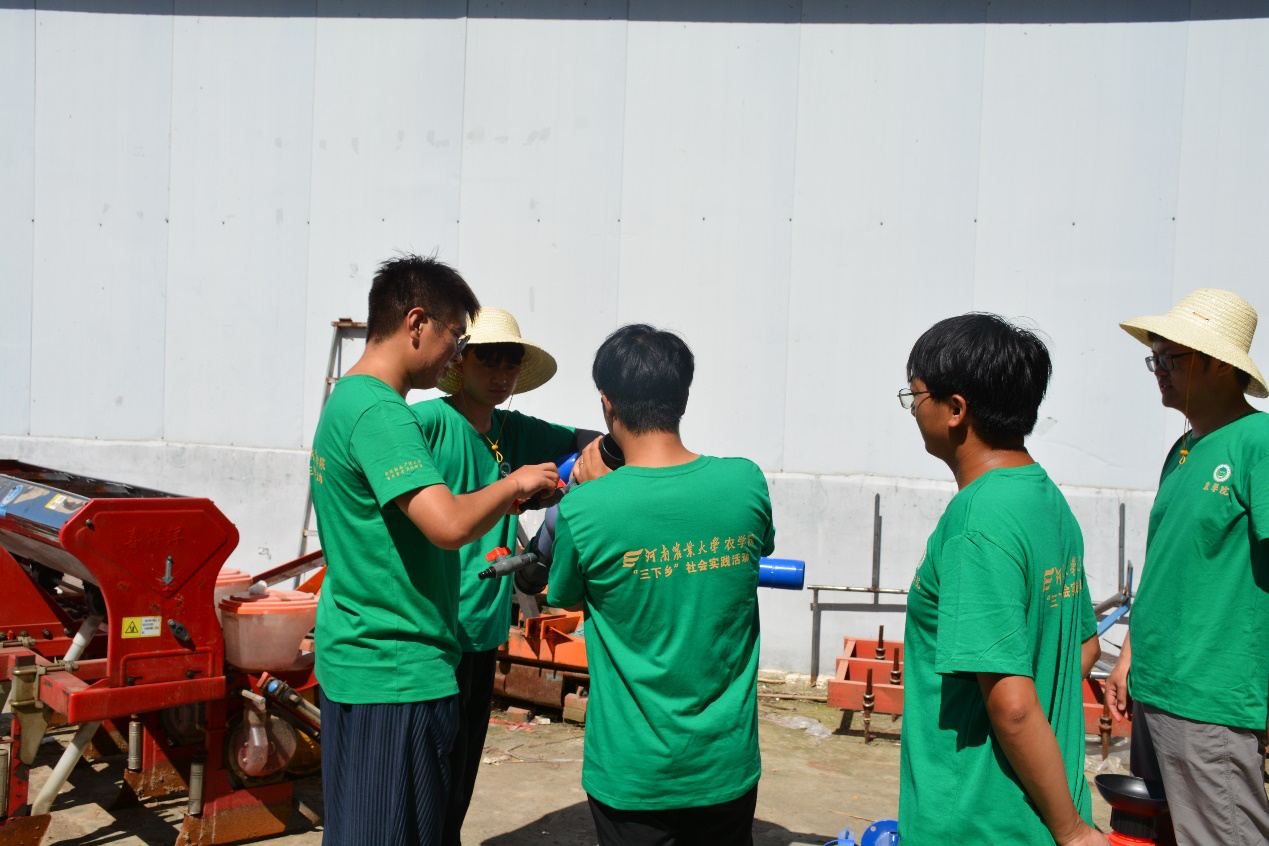 王群教授的带领下到驻马店西平县,走进西平县二郎镇高标准农田里开展玉米密植高产精准调控技术推广调研工作。实践团先后来到西平县二郎镇中国农技推广站、鑫鑫农场等地,与当地的农户及种粮大户交流,并深入了解、学习考察当地夏播实际生产状况。