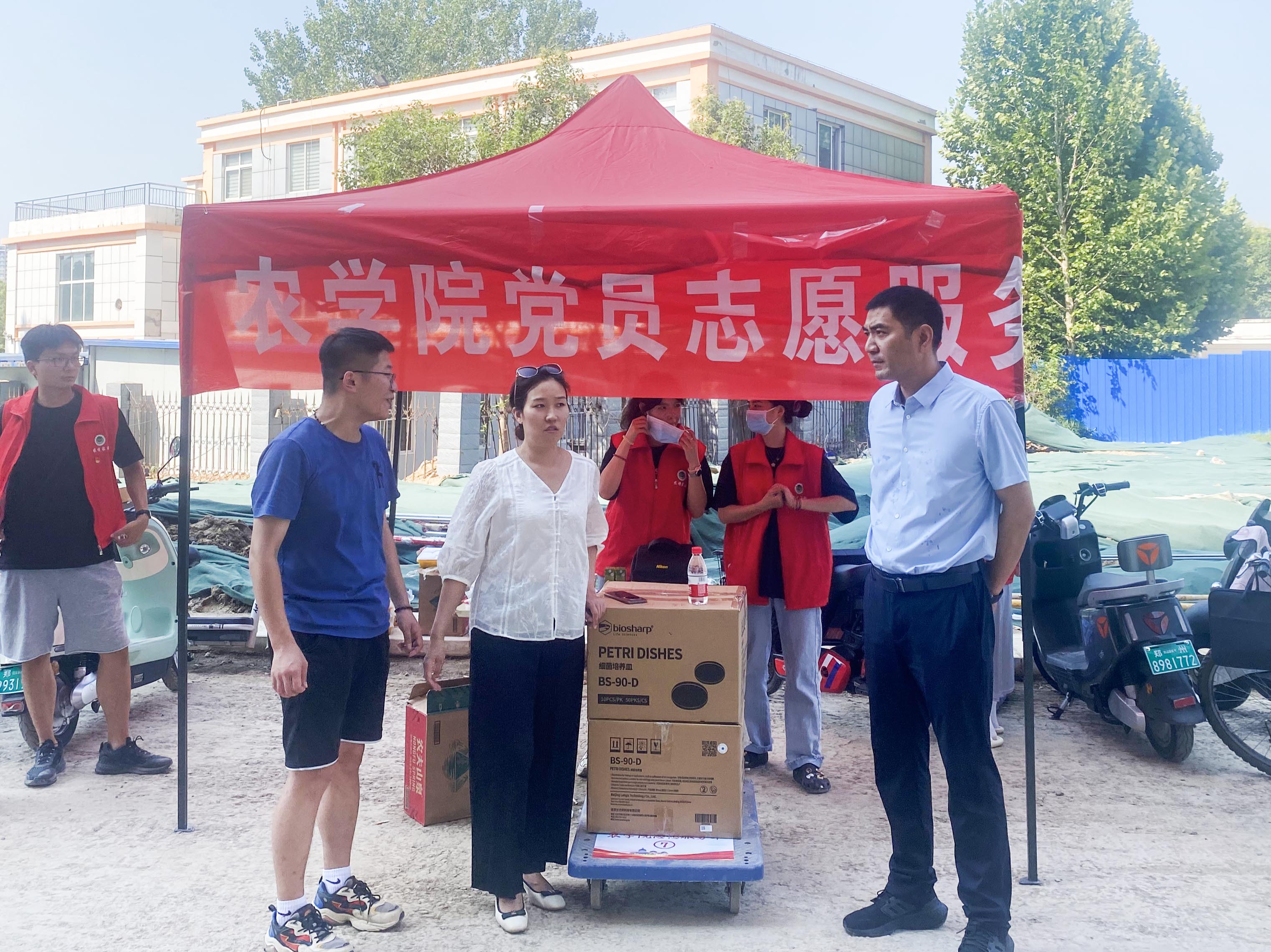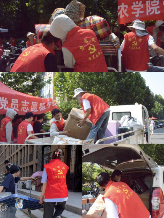为确保搬迁工作安全、有序、高效进行,学院高度重视,提前多次召开专题会议,充分关切学生需求,不断完善优化搬迁方案,做好预备物资、志愿者招募、筹备运送行李的工具等前期工作。学院在原宿舍区牡丹楼下,三期宿舍1号、2号楼前分别设置党员志愿服务处,服务点配有教工及学生志愿者为同学们照看运送物资,提供矿泉水、绿豆汤及菊花茶等。期间,副院长李浩贤、陈锋等深入搬迁现场实地调研,与在场师生耐心交流。搬迁现场,身穿红马甲的志愿者或骑电三轮,或拉小推车,匆匆往返穿梭新老宿舍楼宇之间,从晨光熹微到繁星闪烁,他们忙碌的身影勾勒出校园里最靓丽的风景线。