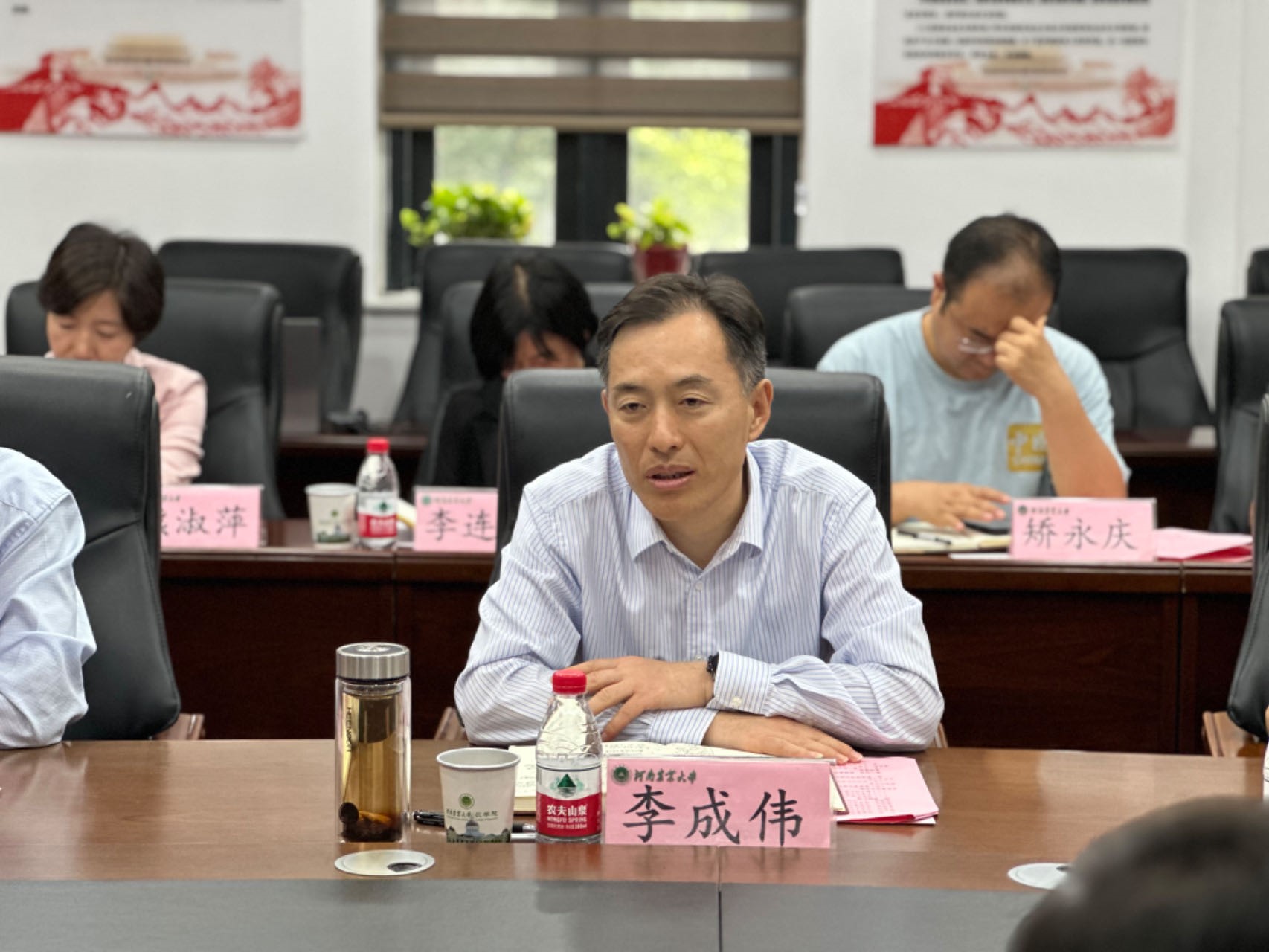 会后,李成伟来到龙子湖校区第一实验楼小麦玉米品种展示区、小麦遗传育种研究实验室、玉米种质资源创新实验室,详细了解小麦基因组解析与分子育种创新、玉米种质资源创新与新品种选育等情况,并听取相关负责人汇报。