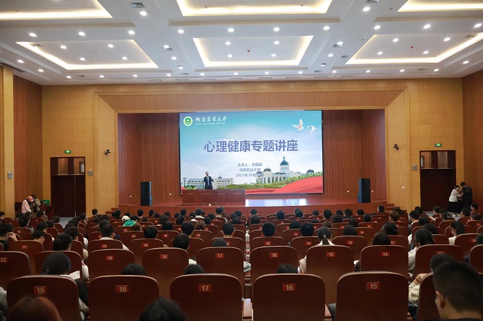 于龙子湖校区图书馆报告厅举行心理健康专题讲座,我校文法学院社会学系心理学博士李国超受邀担任讲师。院团委书记朱瑞萍,院团委副书记唐朝、陈曦冉及辅导员杨航出席活动,草榴