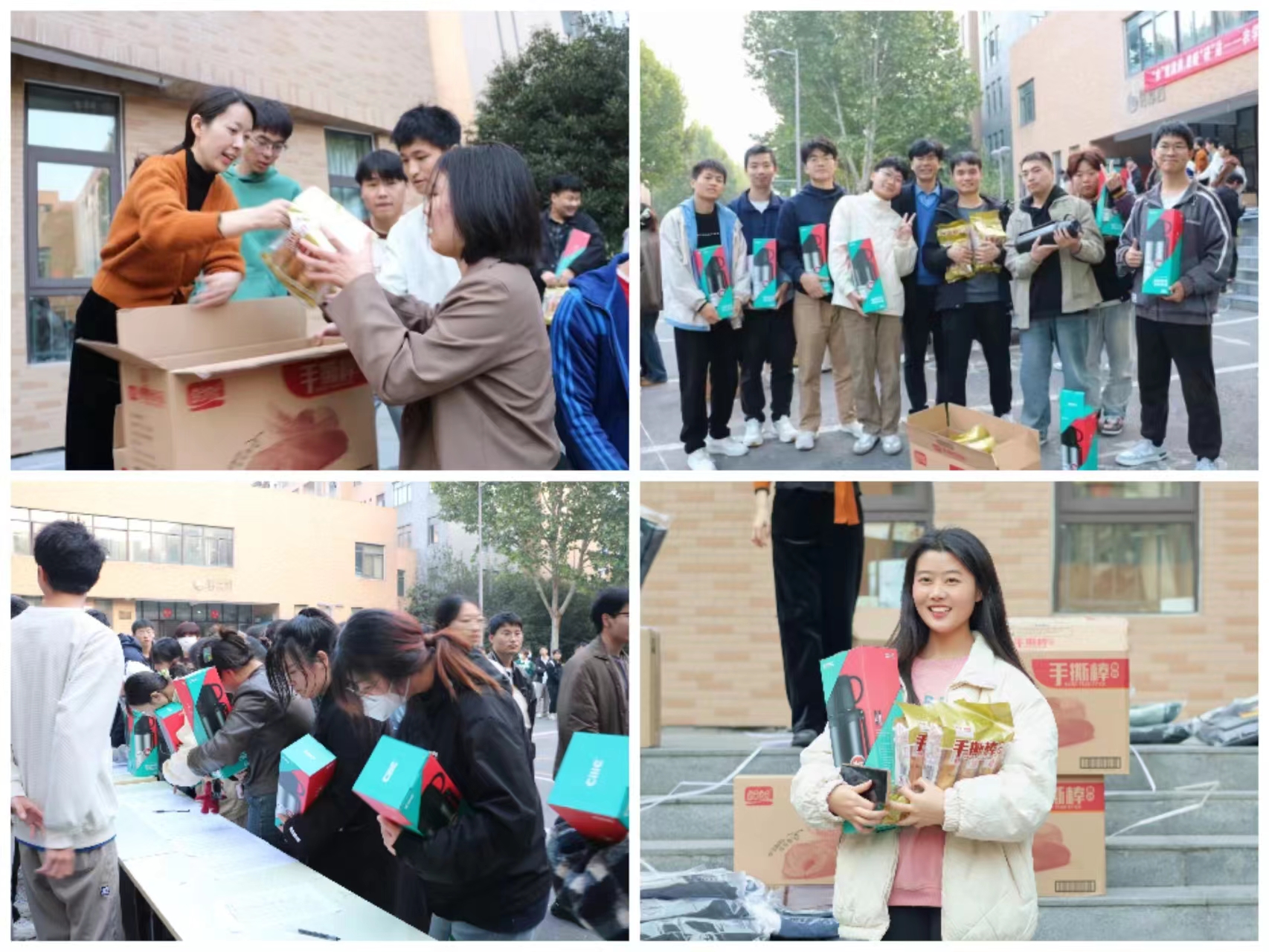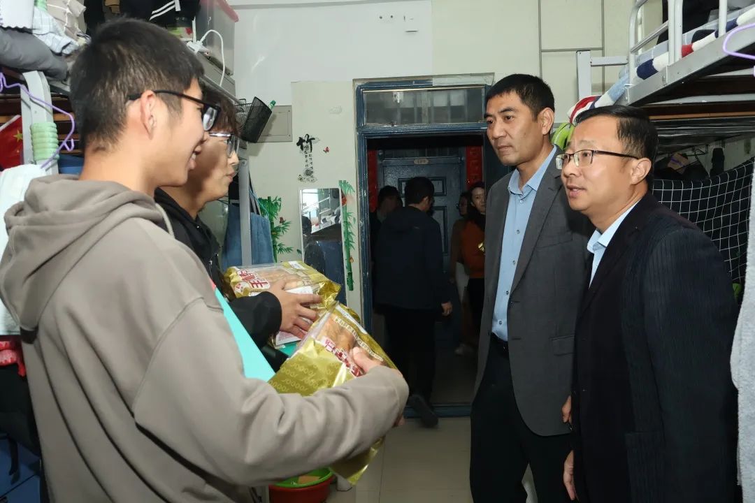 领导老师走进宿舍与学生深切交流,并将考研大礼包亲手送到学生手上。“在学习生活中有什么困难吗?”“有心仪的目标院校吗?”“最近备考紧张吗?”马菲耐心询问并悉心解答学生们在生活及备考过程中遇到的困惑,嘱托学生们在备考的同时也要注意保暖,时刻保持良好的身体状态,同时,鼓励大家充满信心、奋战到底,以轻松愉悦的心情迎接考试。接着,辅导员和班主任分批将暖心物资分发给学生们,鼓励大家全力以赴,不负自己。活动现场温馨感人,学生们深深地感受到草榴
