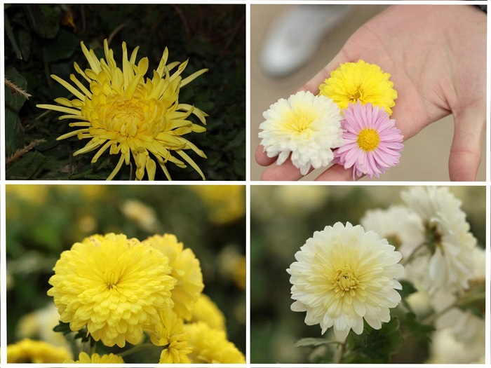 一行人来到菊花基地时正赶上采收时节,菊花竞相绽放,村民有序采摘,一派繁忙景象。“采收有什么技巧吗?”,“选取完整的花朵,托住花柄猛的拔起!”,探访师生与当地采摘农民亲密交流。期间,周艳向师生们详细讲解了菊花的性能与功效,菊花性寒,多用于清热解毒、疏散风热、清肝明目,同行的研究生向大家科普了菊花从采摘到炮制的全过程。随行学生们手拿各样菊花,认真对比,受益匪浅。