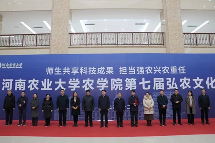 本网讯(通讯员 王佳田)“光阴终究有期,冬至如约而至”。12月22日,恰逢暖阳高照的冬至,草榴于龙子湖校区第一实验楼一楼大厅举办以“师生共享科技成果,担当强农兴农重任”为主题的第七届弘农文化节,校长介晓磊、副校长郭战伟、学术副校长王道文、党委办公室、党委宣传部、党委学工部、党委研工部、校工会、科技处、社会服务处、校团委等相关职能部门负责人,草榴