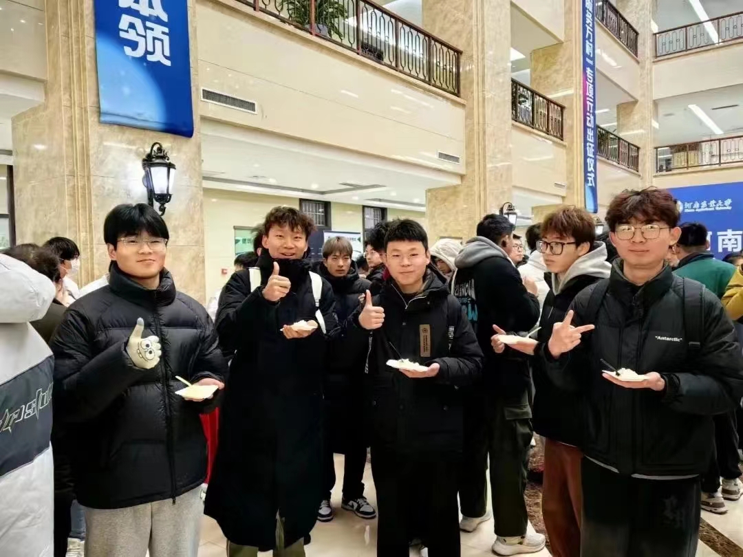 师生分别在龙子湖校区和文化路校区共同制作而成。活动现场老师和学生们一起拌肉馅、擀面皮、包饺子,互相交流、沟通、关心、问候,通过参与劳动,感受到师生间的暖暖温情。一会儿功夫,一盘盘热气腾腾的饺子便出锅了,大家在欢声笑语的氛围中共同分享喜悦。