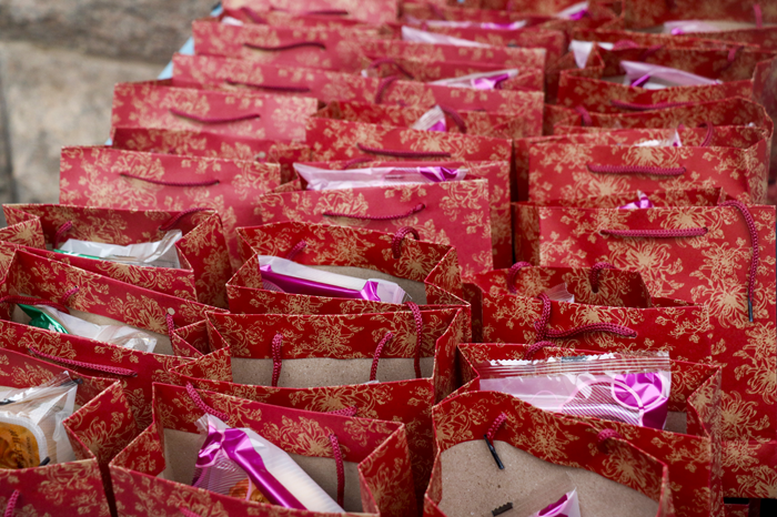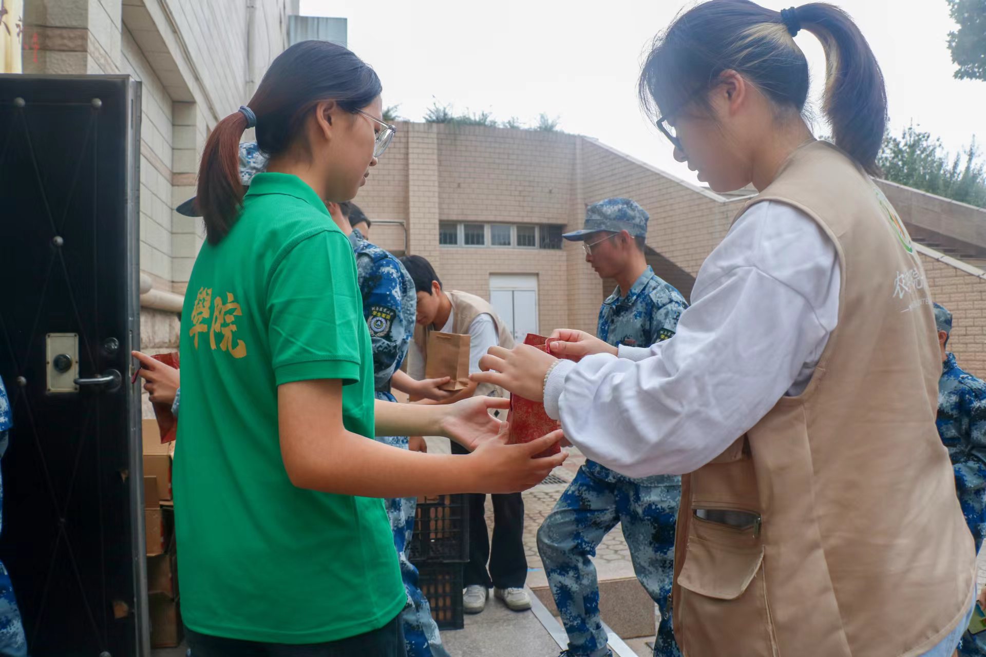 开学典礼,学院为24级新生准备了美味的月饼水果礼袋,在同学们列队步入大礼堂参加开学典礼的时候,班主任老师和助班助教将中秋礼袋发放到每位新生的手中。