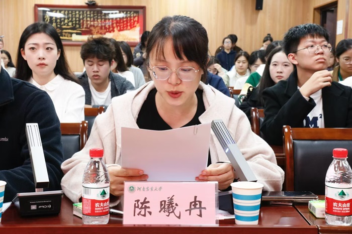 社会实践先进个人代表张雨欣发言,她介绍了自己在实践中的经历和心得体会,强调这次实践不仅是一次教育的成功,也是一次人生的历练;不仅是一次精神的洗礼,也是一场深厚缘分的缔结之旅。她愿青少年都能成为温暖的光,让埋下的种子生根发芽。