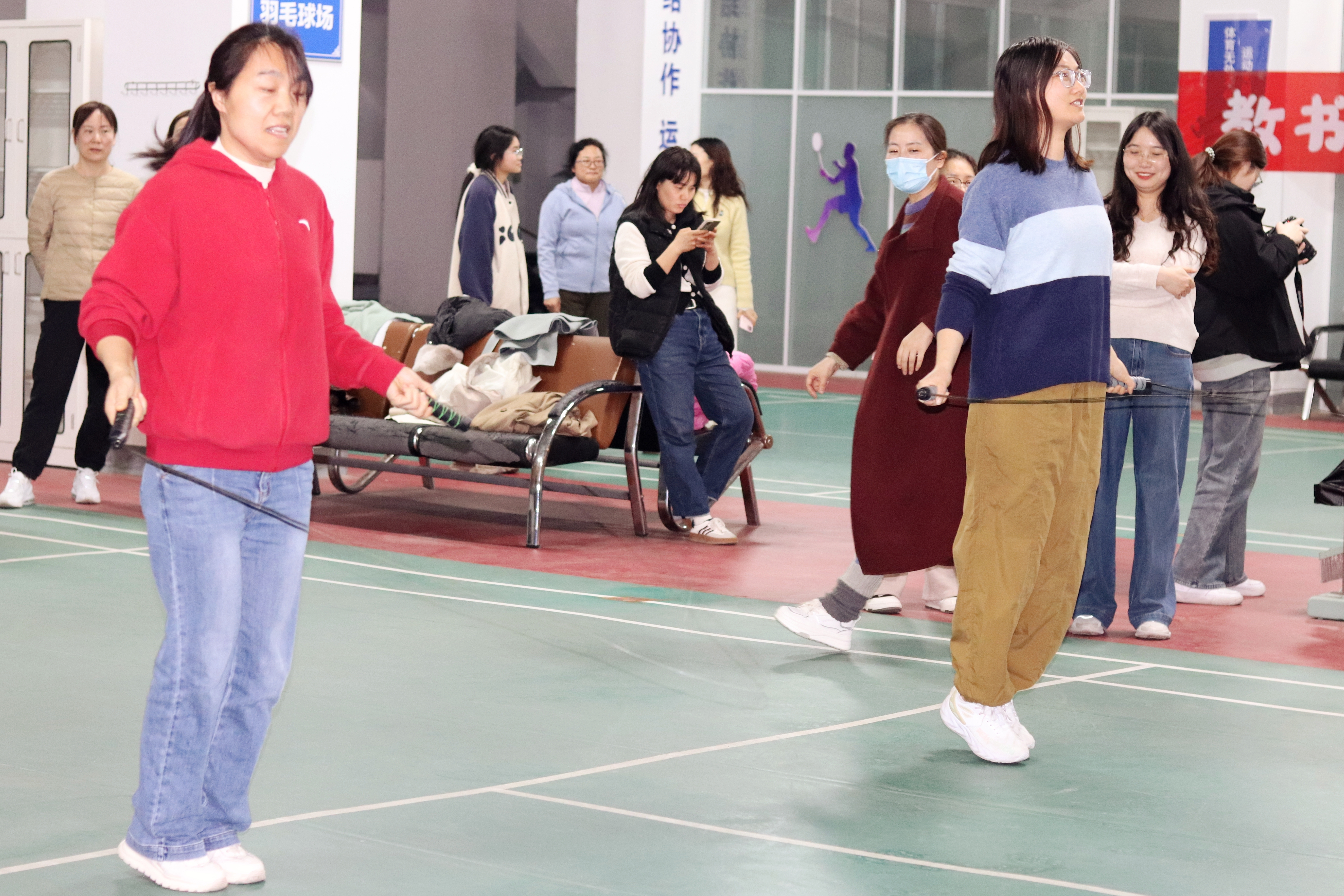 座谈会结束后,趣味运动会在轻松愉快的氛围中拉开帷幕。运动会设置了跳绳、踢毽子、筷子运送乒乓球三个项目,既充满趣味性,又考验身体协作能力。赛场上,女教职工们精神饱满、奋勇争先,加油声、欢笑声此起彼伏,现场气氛热烈而温馨。