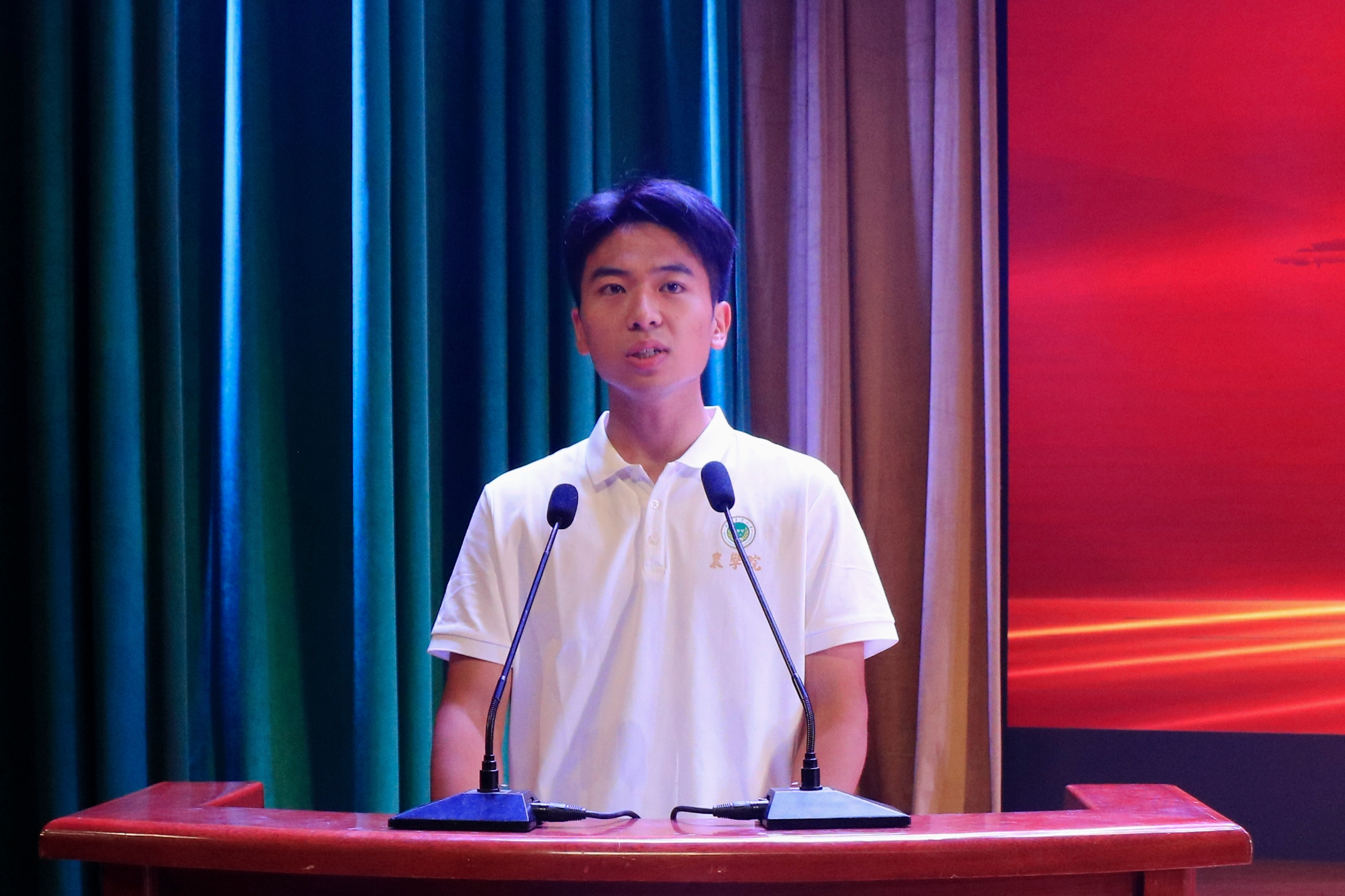 本科生高年级学生代表2023级生科1班王兆坤发言,他结合自身经历向新生们分享一些感悟:首先要明确一个目标;其次建立两种热情:对知识的渴求和对校园生活的热情;最后,他祝愿同学们能收获三个美好:学业成果的收获,综合能力的提升,草榴