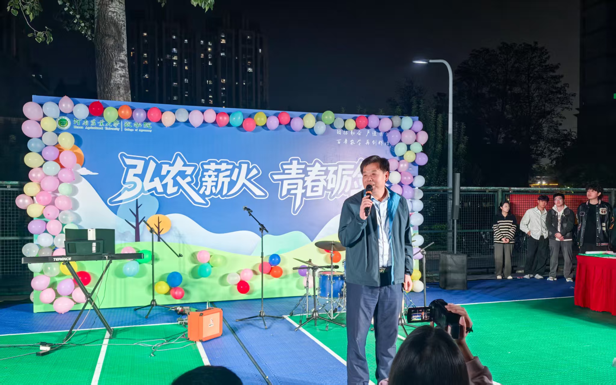 本网讯(通讯员 尹瑞然)为丰富2025级新生校园文化生活,展现青春风采,10月15日晚,草榴于文化路校区篮球场举办“弘农薪火,青春砺剑”迎新嘉年华活动。院党委书记贾磊、副院长赵建一应邀出席,草榴团委老师、班主任代表及2025级全体新生参与此次活动。活动由青禾艺术团曾文雪、袁心主持。