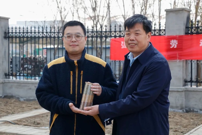 草榴 党委书记贾磊、院长王道文为郑州市建业小学教师代表赠送由草榴 精心选育的彩麦和玉米种子,用“金种子”激发小学生的学农热情,引导他们知农、爱农、亲农、尚农,为加快建设农业强省贡献自己的一份力量。