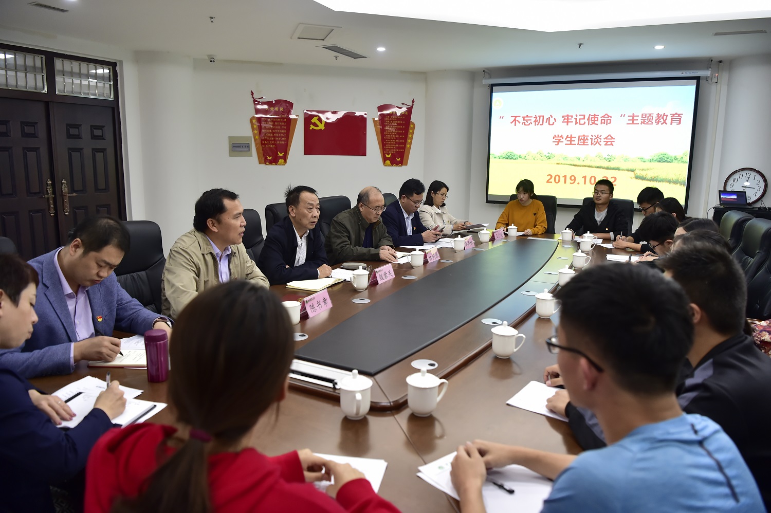 座谈会上,校党委办公室党支部和农学专业学生党支部还进行了结对共建。
