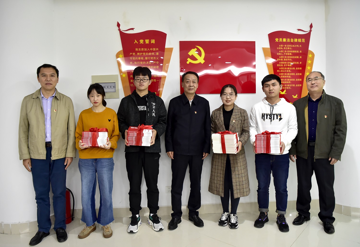 在座谈之前,大家共同观看了学校宣传片《以农立心 执手百年》。魏蒙关向所联系的农学学生党支部全体党员和2017级农学绍骙班每位同学赠送了《榜样》一书。